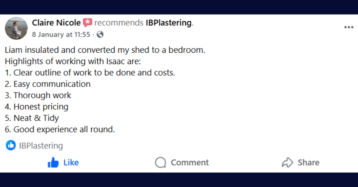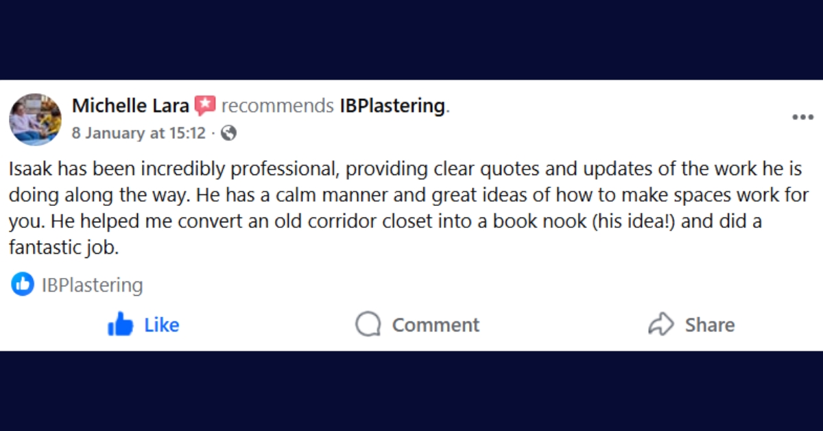 I turn up when I say I will, work efficiently and leave jobs cleaner than when I get there, whether it’s a small repair or a full renovation, I focus on getting it done properly and giving a quality finish every time.