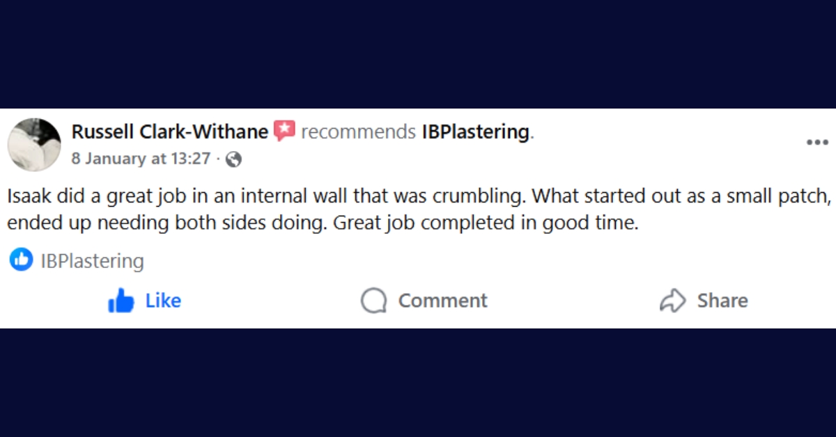 I’ve been running IBPlastering for 2 years, carrying out clean, reliable plastering work to a high standard.